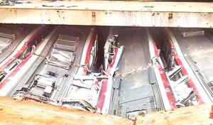 ¡Insólito! 8 vagones de metro llegaron aplastados al Puerto