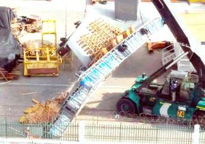 Balsa con cargamento del show pirotécnico se cayó de la grúa
