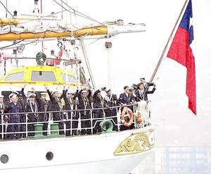 Voy y vuelvo: el Buque Escuela "Esmeralda" zarpó bajo la lluvia