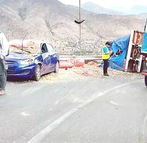 Mucho ruido, pero hartas nueces: camión volcó y perdió la carga