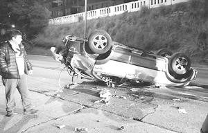 Salvada providencial de chofer que volcó en auto