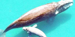 Precaución por presencia de ballena franca austral junto a cría en la zona