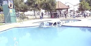 Quería mover el auto y terminó en la piscina