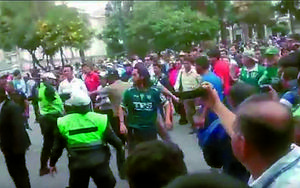 Hinchas protagonizan violenta trifulca en plaza de Arequipa