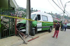 Retén móvil chocó poste y frontis de una casa en el cerro San Roque