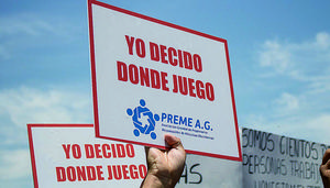 Protestan en el Congreso a favor de los tragamonedas