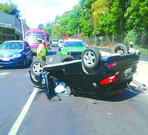 Vehículo menor volcó en bajada Santos Ossa