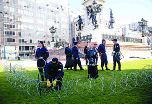 Hasta con alambre de púas cuidan monumento luego de ser atacado
