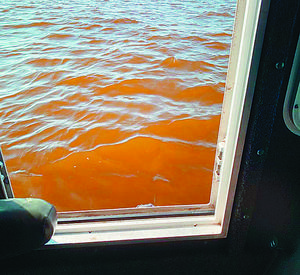 Algas en el agua tornaron el mar de color marrón en Quintero
