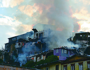 Violento siniestro destruyó nueve viviendas en cerro Santo Domingo