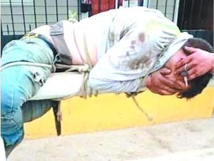 Amarran y golpean a sujeto por agredir con martillo a comerciantes