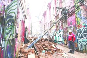 Derrumbe de fachada provocó la caída de 6 postes en principal acceso a zona turística de Valpo